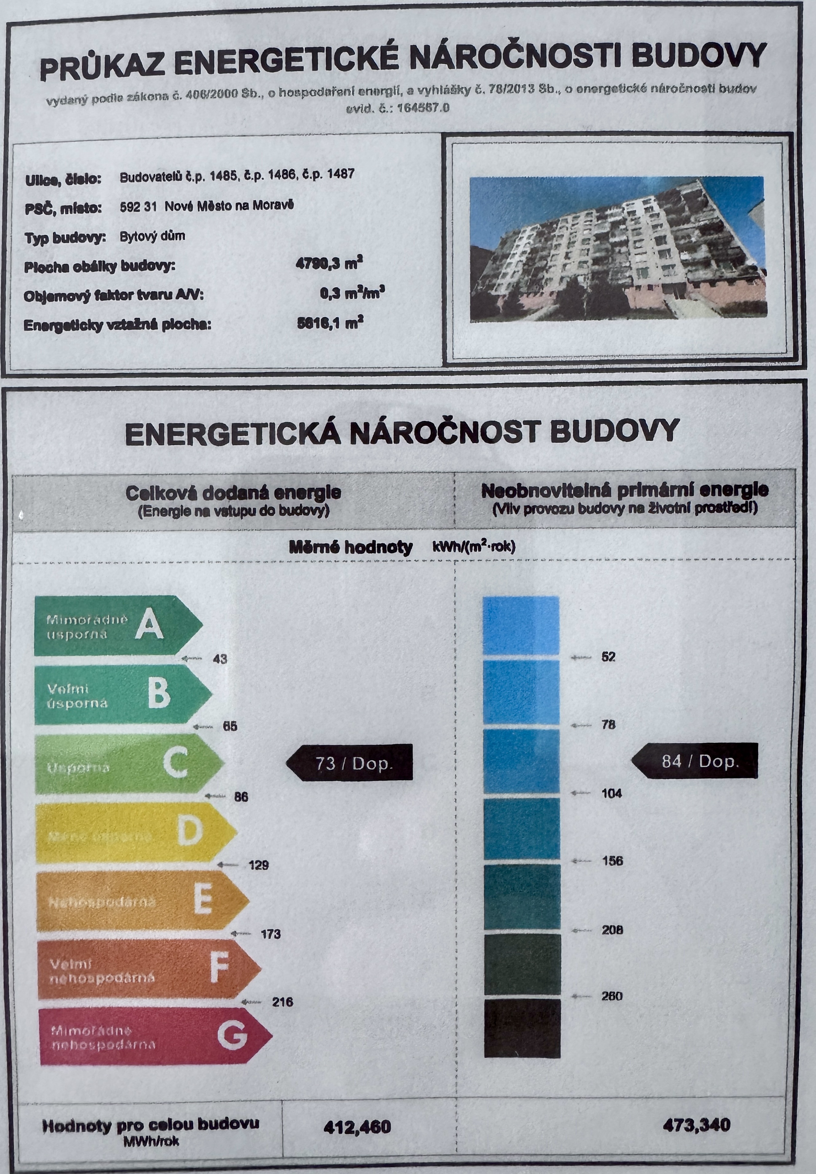 | Ukazatel ENB | 84 kWh/m2 za rok |